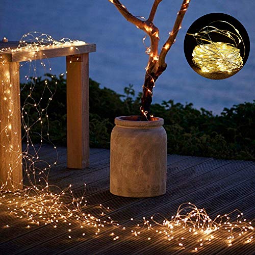 Sunboia Luci solari a energia solare, 2 x 100 LED, filo di rame, luci decorative da giardino per feste, Natale, Halloween, matrimoni, bianco caldo