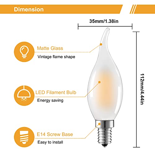 Suncan 6 lampadine a LED E14, dimmerabili, a forma di candela, 4 W, sostituisce lampadine alogene da 40 W, 360 lumen, 2700 K, luce bianca calda, vetro opaco