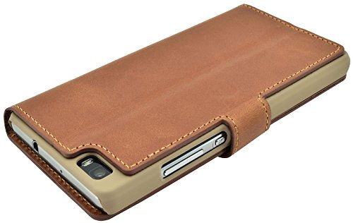 Questa millimetrica, apposita custodia in pelle è per Huawei P8 Lite in vera pelle durevoli, robuste fatta.