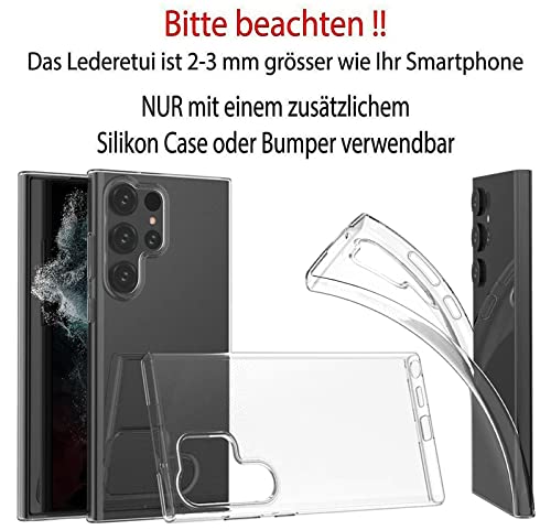 Suncase Borsa Custodia Compatibile Con Samsung Galaxy S23 Ultra 5G Custodia Con Aggiuntive Case/Custodia/Bumper Linguetta Con Sistema Custodia Cellulare IN Pelle Custodia Protettiva IN Blu-Pebble