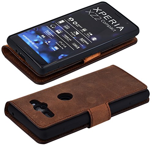 Suncase - Custodia a Libro per Sony Xperia XZ2 Compact, Sottile, in Pelle, con Funzione leggio e Scomparto per Carte di Credito, Interno infrangibile