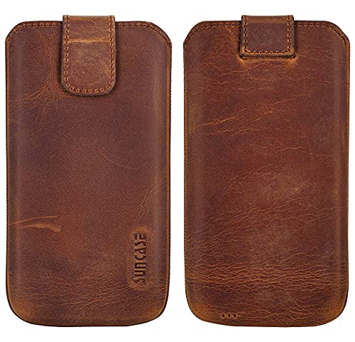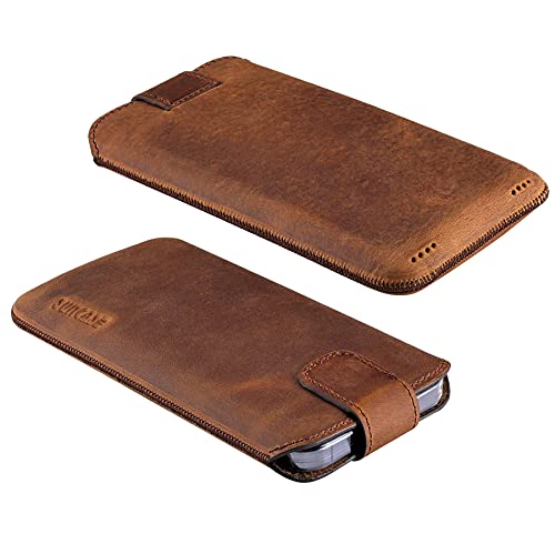 Suncase Custodia in vera pelle compatibile con iPhone 13 Pro (6,1 pollici) con custodia protettiva trasparente | Cover in silicone con funzione di estrazione e chiusura magnetica, colore caffè antico