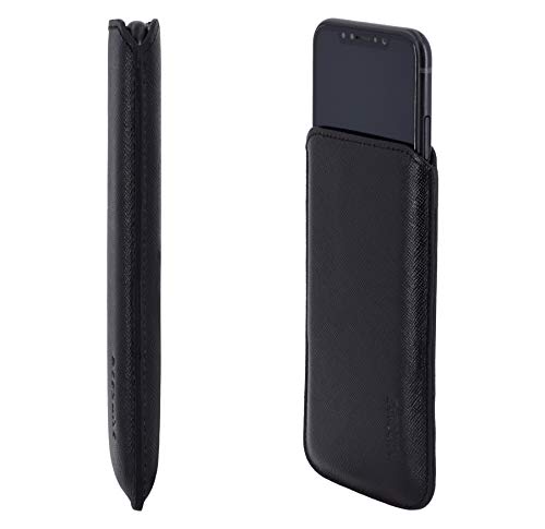 Suncase - Custodia in pelle per iPhone X, con linguetta di estrazione