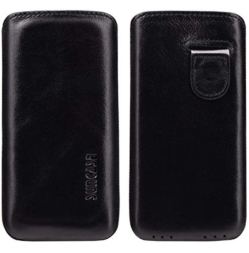 Suncase - Custodia in Pelle con meccanismo di Estrazione Facile per Apple iPhone 5 / 5S, Nero