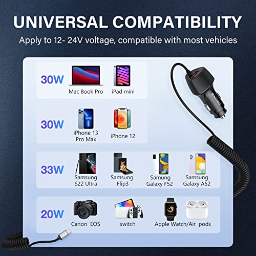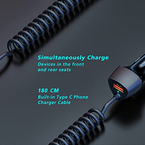 SUNDAREE Caricatore Auto USB C Cavo,51W 12V~24V PD&QC&PPS Carica Rapida Tipo C Cable Caricabatterie Auto Adattatore for iphone 13/Xiaomi redmi Note 11 11s/Poco/Samsung M32/OnePlus/Huawei/OPPO/POCO