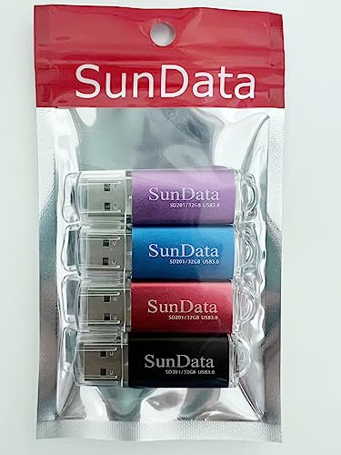 SunData 4 Pezzi Pendrive 32GB Chiavetta USB 3.0 archiviazione dati pen drive Fino a 90 MB/s, (4 Colori Misti: Nero, Blu, Rosso, Viola)
