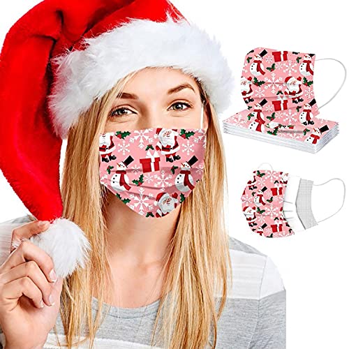 Sundaylike Mascherine Adulti 50 Pezzi Tessuto Viso Cotone Christmas Multicolore Antipolvere Visiera USA e Getta Comfort 3 Strati Adatto per Donna Uomo Natale Combinazioni di Stampa (A2)