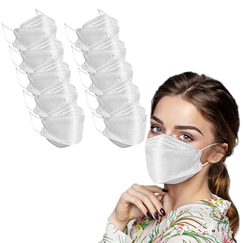 Sundaylike Mascherine Adulti 4 Strati Tessuto Viso Cotone Mascherine Rosa Bianco Nero 10/20/50 Pezzi Antipolvere Visiera USA e Getta Adatto per Donna Uomo (50 Pezzi, B Bianco)