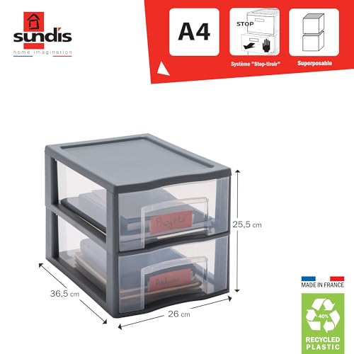 Sundis TAG TOWER formato A4, 2 cassetti con porta etichette e sistema anticaduta, Antracite