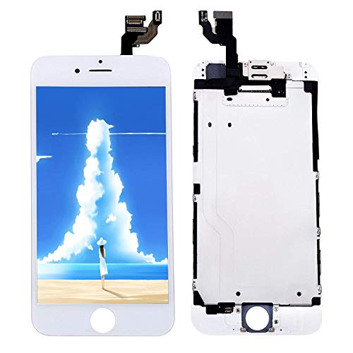 Sundrawy Display Screen Digitizer per iPhone 6 Schermo LCD Touch Parti di Ricambio (Fotocamera, sensore e Altoparlante Auricolare) Utensili Inclusi (6 Bianco Montaggio Completo)
