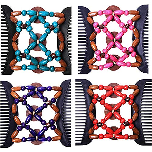 Suneast Magic perline di legno a doppia clip Hair Slide elastico capelli pettine clip per ragazze donne matrimonio accessori - rosso