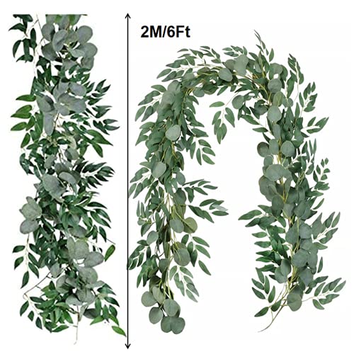 Suneech Ghirlanda di Eucalipto, Pianta Artificiale di Eucalipto 2M Artificiale Eucalipto e Salice Vines, Ghirlanda di Eucalipto Artificiale Piante Sospese Artificiali per Feste Decorazione