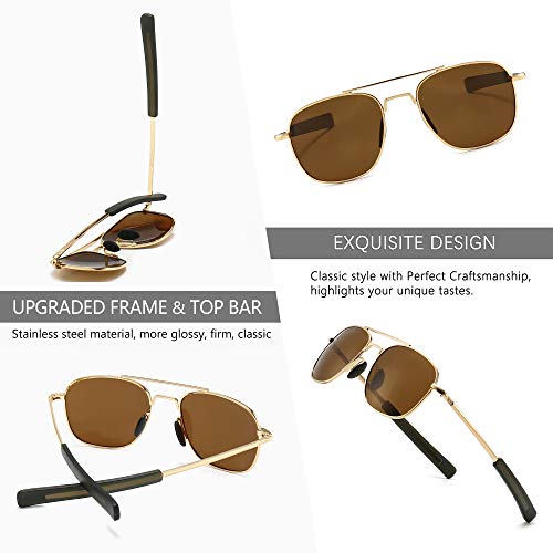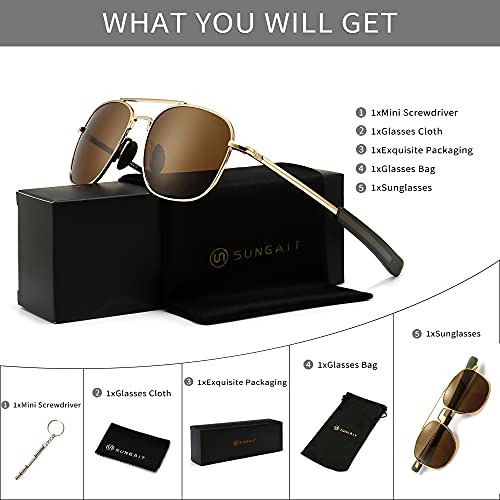 SUNGAIT Military Occhiali da sole da uomo Stile Pilota polarizzati- Baionetta Templi (Montatura Oro/Lente Polarizzata Marrone)