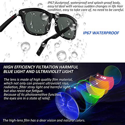 Sunglasses Occhiali da Sole Audio Wireless Bluetooth Resistenti all'Acqua Cuffie Auricolari Aperte Musica E Chiamate in Vivavoce per Uomini E Donne, IP67 Impermeabile, Lente Polarizzata UV400