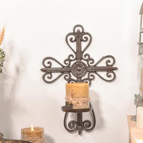 Sungmin Portacandele da Appendere a Parete in Ferro battuto per Applique da candelabro a Colonna tealight - Portacandele per Candele a Forma di Croce Vuota Stile Semplice Vintage