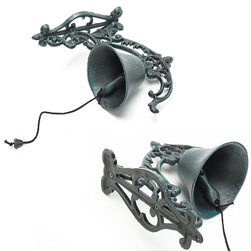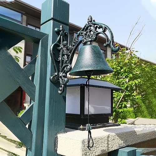 Sungmor Campana a muro in ghisa per uso pesante in stile rustico | 10,8 × 9,05 pollici, verde scuro | Aristocratic Logo Campanello per porte in ferro battuto