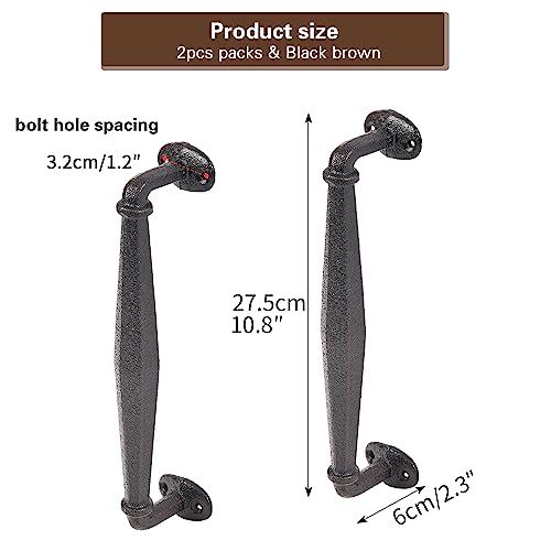 Sungmor, maniglie per porte in ghisa, resistenti, confezione da 2 pezzi, marrone scuro e 27 cm, maniglia vintage e decorativa per porta, per corridoio e passaggio, per giardino, cancello, capannone