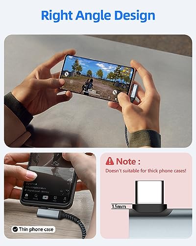 SUNGUY Cavo USB C 90 Gradi Cavo Type C Ricarica rapida e trasferimento dati a 10Gbps Cavo Android Auto di tipo C compatibile con iPhone 15 Plus Pro Max, Galaxy S23 S22(0.3M)