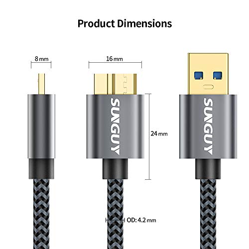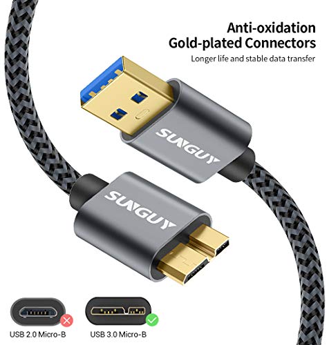 SUNGUY Cavo Micro USB 3.0 0,5 M, Cavo USB A maschio a Micro B maschio per disco rigido per Seagate, Toshiba Canvio, Western Digital (WD), My Passport ed Elements, Galaxy S5, Note 3