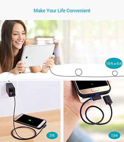 Sunguy, cavo di sincronizzazione dati e ricarica micro USB 2.0 ad angolo retto, con connettore micro, 4 pezzi (0,5 m, 1 m, 2 m, 3 m), colore nero