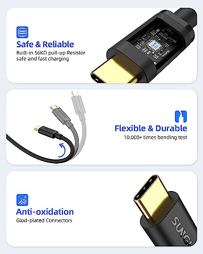 ✅【 Materiali di alta qualità 】 Il cavo USB C di SUNGUY è dotato di un connettore in alluminio resistente, che garantisce una lunga durata e una connessione perfetta. La resistenza integrata da 56 kΩ garantisce una ricarica sicura e protegge il dispositivo da eventuali danni.