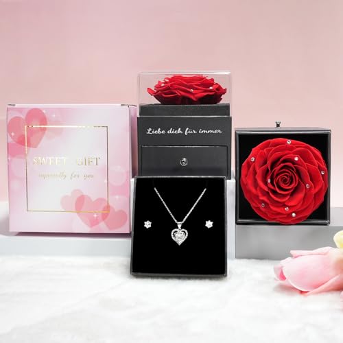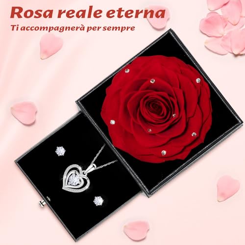 Sunia Rosa Eterna Rosa Conservata Fatta a Mano Fiore di Rosa Reale Incantato Regali per le Donne Mamma Nonna Natale Festa Della Mamma Regalo di San Valentino per Lei Rosa in un Bicchiere con Collana