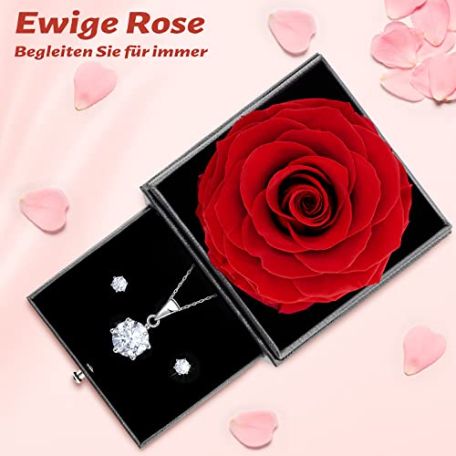 Sunia Rosa Eterna Stabilizzata,Vera Rosa Eterna con Collana Argento 925 Donna con e Orecchini, Handmade Rosa Eternal per L'anniversario di San Valentino, Idee Regalo Donna, Regalo Compleanno Mamma