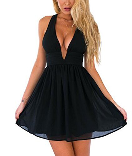 SunIfSnow, mini abito da sera da donna con scollo a V profondo che lascia la schiena scoperta Blue Small