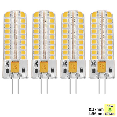 Sunix 6.5W G4 LED, 72 2835 SMD LED, 50W alogene lampadine equivalenti, 320lm, Oscurabile, bianco caldo, 3000K, 360 gradi angolo del fascio, mais silicone lampadina, confezione di 4 unit¨¤ SU142 [Classe energetica A +]