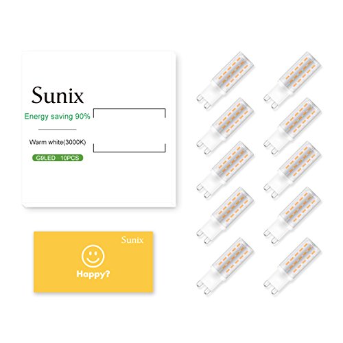 Sunix G9 Lampadina LED 3W(Equivalente a 30W Luce Bianca Calda, Lampadine), 400Lm Non Dimmerabile, 54 x 4014 SMD LED, AC100-220V, CRI>80, Bagliore Romantico Temperatura 3000K, Lampadina LED Set da 10