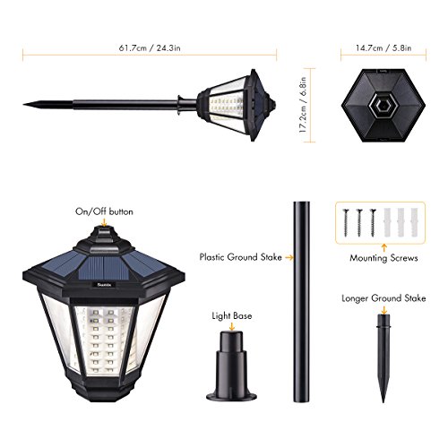 Sunix Lampione Solare per Esterno, 108 LED Impermeabile Montaggio su Palo o nel Terreno, Lampione ad Accensione/Spegnimento Automatici, Illuminazione da Paesaggio(2 pezzi)