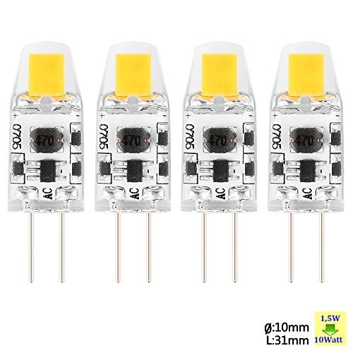 Sunix 4 pc ad alta potenza 1.5W G4 COB AC/DC 12V cristallo LED del riflettore della lampada della lampadina di Dimmable Bianco caldo SU125