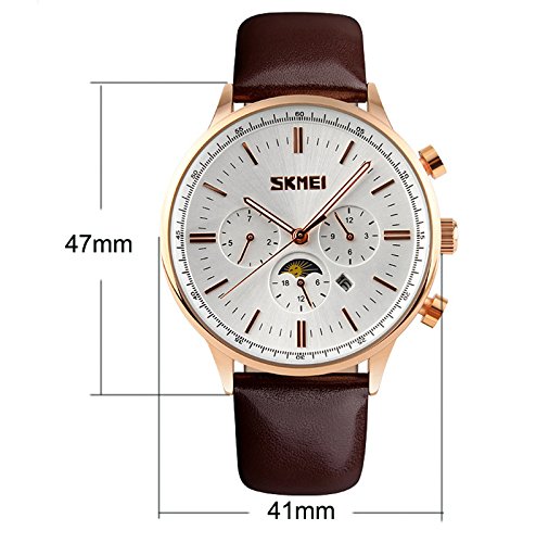 SunJas Luxus Analog Orologio da uomo in pelle orologi luenette Wrist Watch