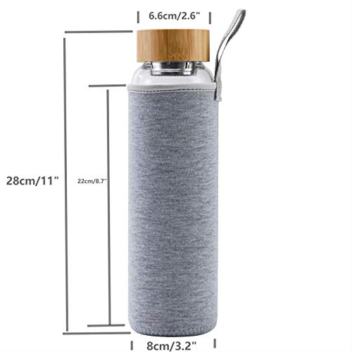 Sunkey Borraccia 1 litro in Vetro Borosilicato per Acqua Riutilizzabile con Tappo di Bambù e Custodia senza Bpa (Grigio)