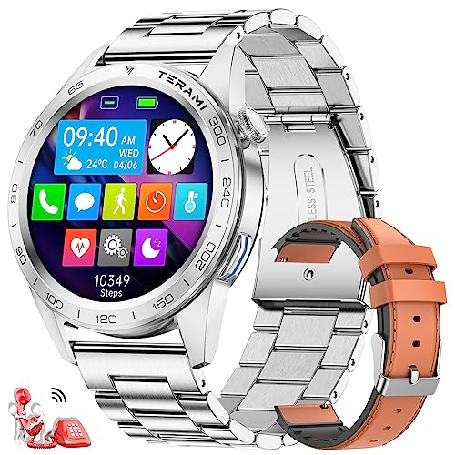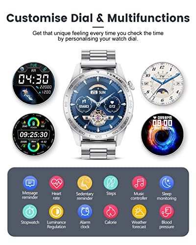 SUNKTA Smartwatch Uomo,1.39" Orologio Fitness Tracker con Frequenza Cardiaca/Sonno/Notifiche Messaggi/Contapassi/Cronometro Argento Orologio Smartwatch per Android iOS(2 Cinghie)