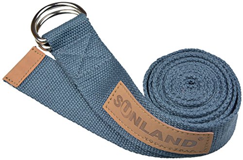 Sunland Cintura da Yoga in Cotone Stretch Strap D-Ring della Vita della Cinghia del Piedino Fitness Training Regolabile 183cm Grigio