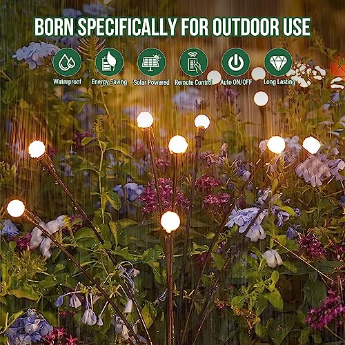 Sunlary Luci Solari da Giardino, 6 Pezzi 48 LED Luci Solari Firefly Luci Decorative per Esterni IP65 Impermeabile, Luci Solari per Esterni con Telecomando per Giardino, Balcone, Bianco Caldo