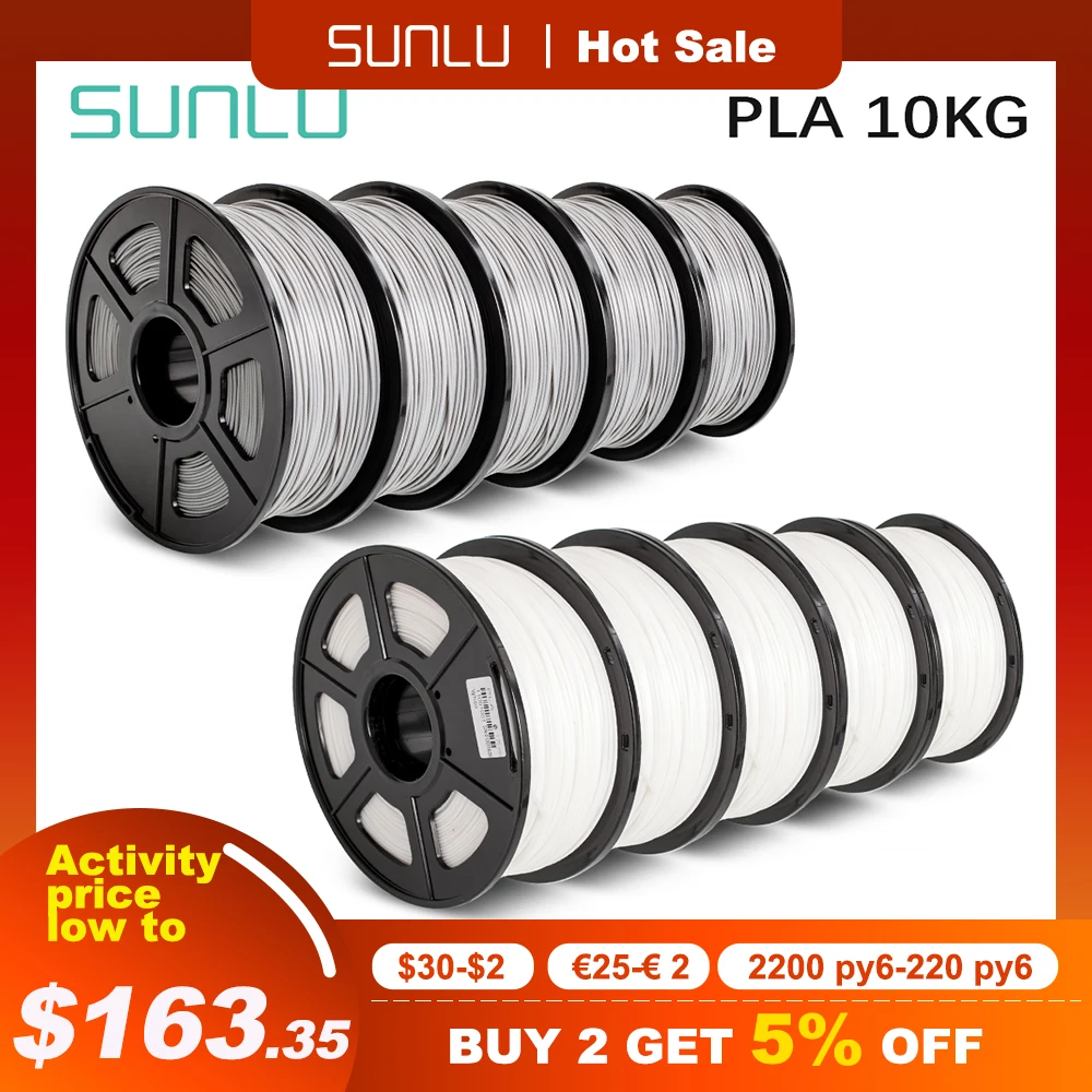 SUNLU 1.75mm PLA Filament For 3D Printer Filaments PLA 3d Biodegradable Filament Dimensional Accuracy +/-0.02mm 10 Rolls/ set