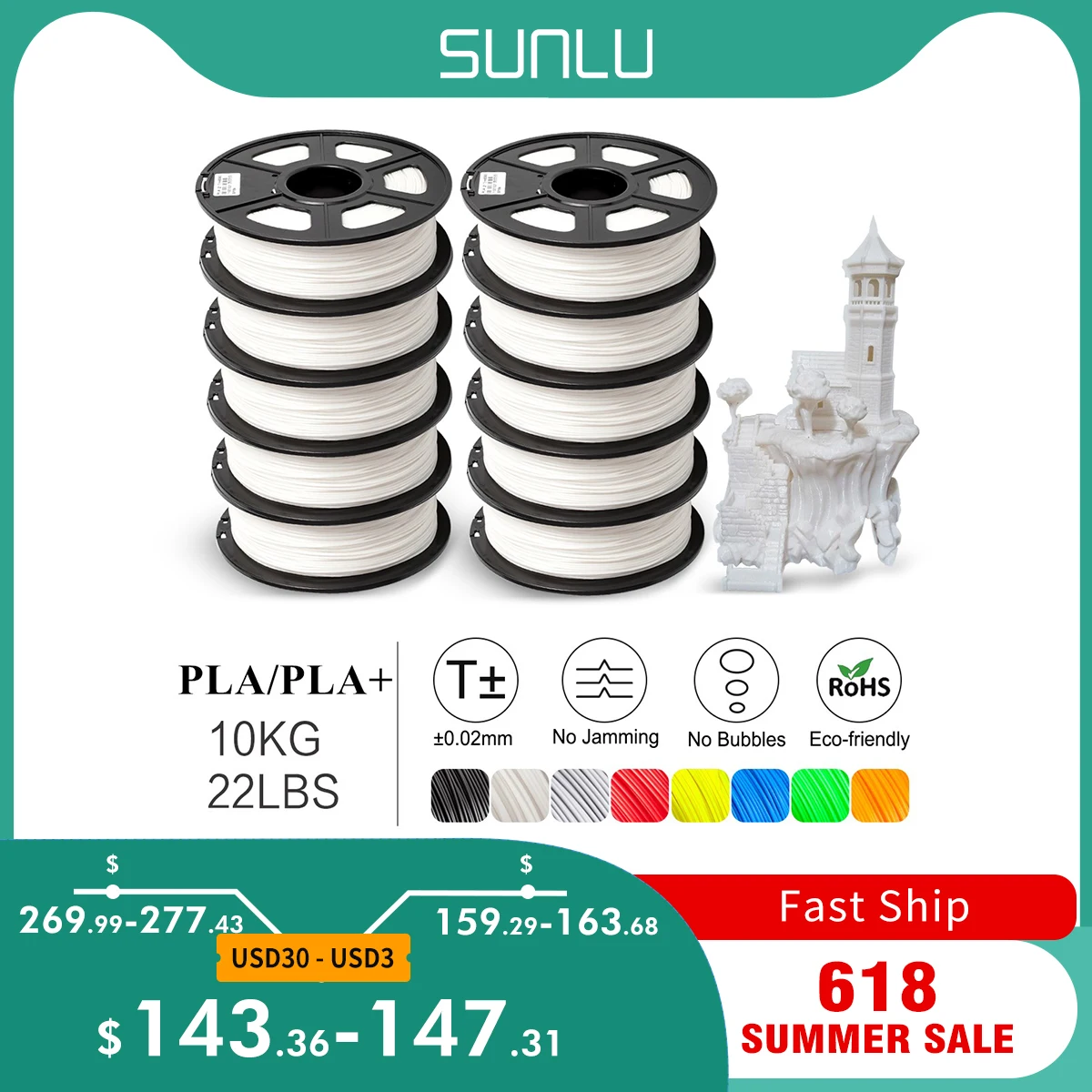 SUNLU 1.75mm PLA Filament For 3D Printer Plastic PLA 3d Filament Dimensional Accuracy +/-0.02mm 10 Rolls/ set