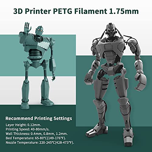 【Diametro 1,75 mm ± 0,02 mm】Il diametro del filamento PETG è di 1.75 mm ed è rigorosamente controllato durante il processo di produzione, la precisione dimensionale è +/- di 0,02 mm. La bobina è da 1 kg.