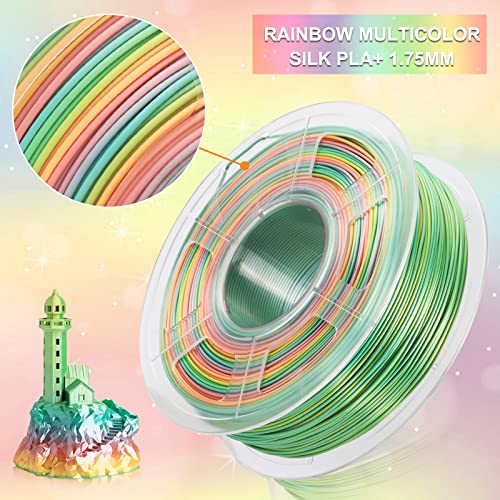 SUNLU Silk Rainbow Filament, Shiny Multicolor Gradient PLA+ Filament 1.75mm, 1kg(2.2lbs)/Spool 3D Filament for 3D Printer & 3D Pen, Shiny Silk Rinbow Ⅰ