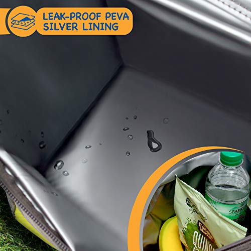 BORSA ISOLATA: questa borsa termica ha uno spesso isolamento termico progettato per trattenere il più possibile calore o freschezza, rendendolo perfetto sia per l'estate che per l'inverno. La fodera PEVA argento riflettente viene utilizzata all'interno della borsa per un ulteriore isolamento che lo rende anche materiale durevole e resistente all'acqua.