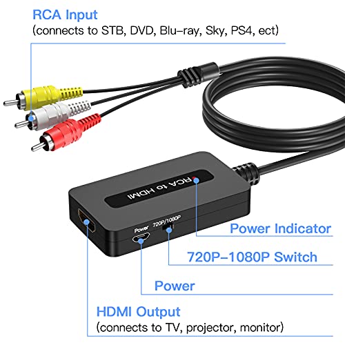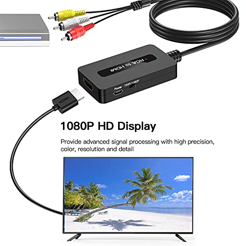 SUNNATCH Convertitore da RCA a HDMI con Cavi HDMI e RCA, Maschio Adattatore RCA HDMI, Convertitore da Composito a HDMI, Convertitore CVBS AV a HDMI Interruttore di Uscita Full HD 720P/1080P