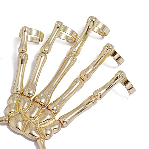 SM SunniMix Braccialetto Scheletro Mano esagerato con Decorazione Punk di Halloween Braccialetto osseo Scheletro per, Oro