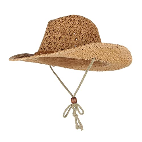 SM SunniMix Cappello Da Paglia Cappello Larga in Stile Cowboy Occidentale per Viaggi Estivi in spiaggia, #4 Cachi, Adulto