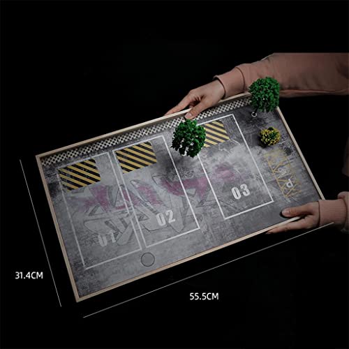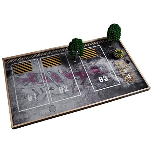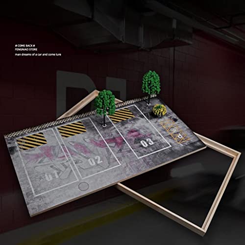 SM SunniMix Miniatura 1/24 Sfondo Diorama Parking Lot Scene Garage w / Tree Model Tabletop Dollhouse Decor, 3 posti Auto