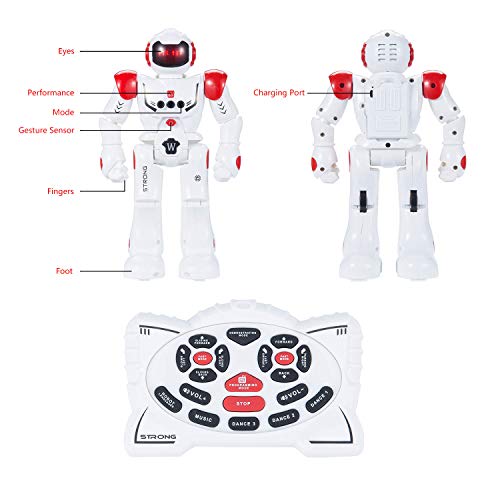 SUNNOW Robot Giocattolo per Bambini Programmazione Intelligente Telecomandato Robot Interattivo Gesti Control Ricaricabile Multifunzionale Robot, Migliore Regalo per i Bambini (Rosso)