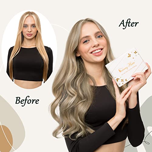 Sunny 20"/50cm, Extension Filo Invisibile Capelli Veri - Hightlight Bionda Dorata con Media - Extension Capelli Veri con Filo Trasparente * 100% Remy Capelli Lisci 100g