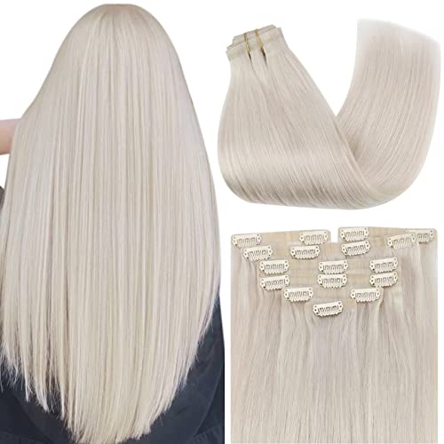 Sunny Clip Capelli Veri Biondi con Seamless PU Testa Piena #60 Biondo Platino 7 Pezzi Più Comodo Lisci 120g(Capelli) Biondi Capelli Veri Clip 100% Remy 40cm Capelli Veri Biondi Clip