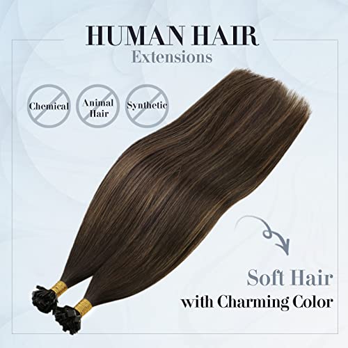 Sunny Extension Capelli Veri Cheratina 50 Ciocche 50cm 50g Balayage Marrone Scuro con Medio 100% Remy Pre Bonded Flat Tip Capelli Extension Naturali